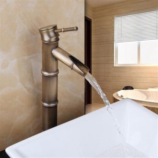 Deze mooie bamboe stijl waterval kraan heeft een messing body welke met brons is afgewerkt, kortom een aanwinst voor uw badkamer. Elegant bamboe design met een hoogwaardige nostalgische afwerking. Ideale kraan voor een losse/ hoge waskom.