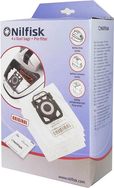 Nilfisk Elite stofzuigerzakken, inhoud bevat 4 stofzakken en voorfilter voor de motor. De stofzuigerzakken zijn van een hoogstaande kwaliteit en voorzien van een afsluit-deksel bij de ingang van de stofzuigerzak, er kan dus geen stof uit de stofzuigerzak ontsnappen.
